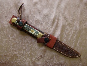 Zdobené pouzdro na nůž s odnímatelným závěsem na opasek.
